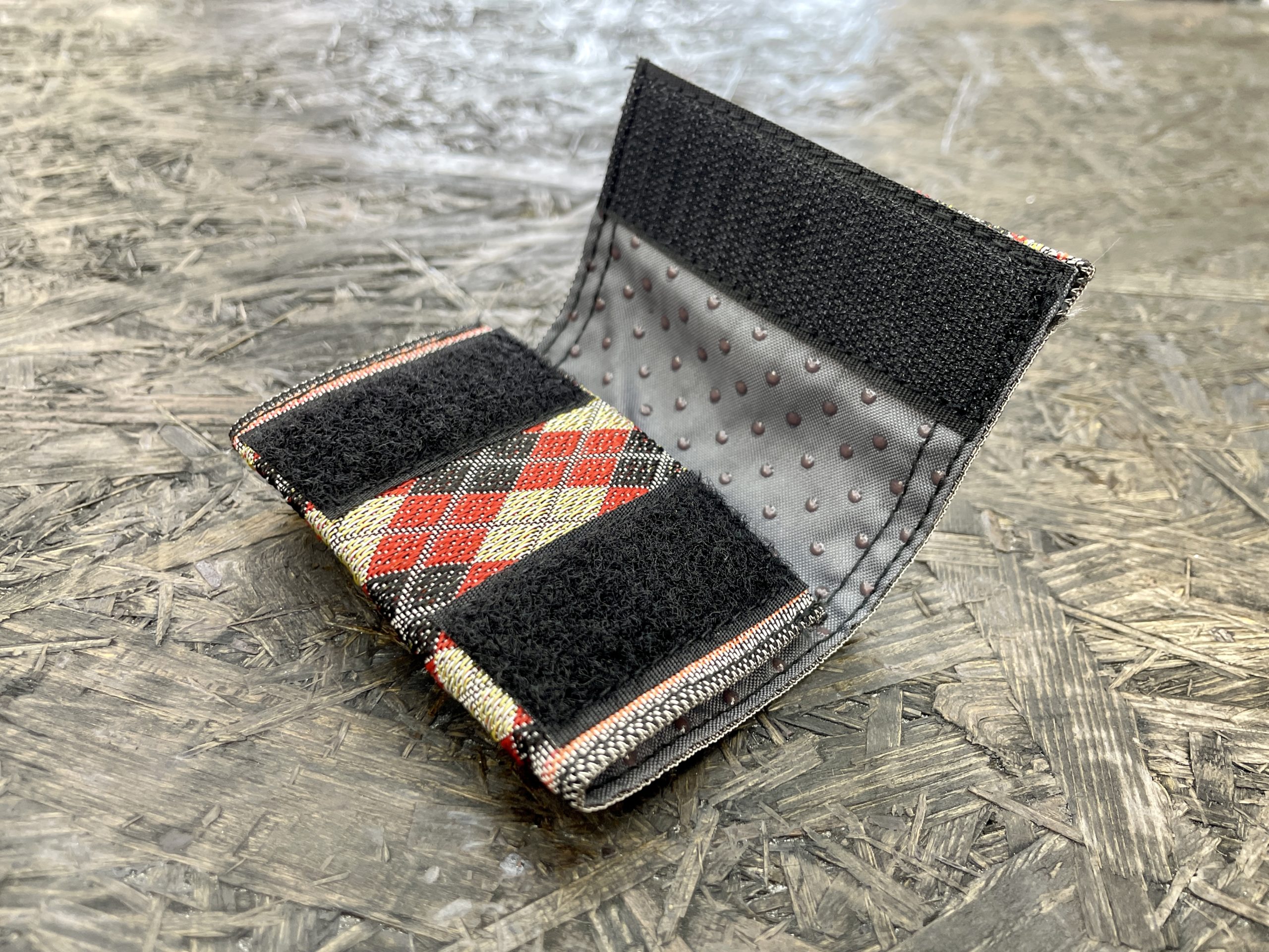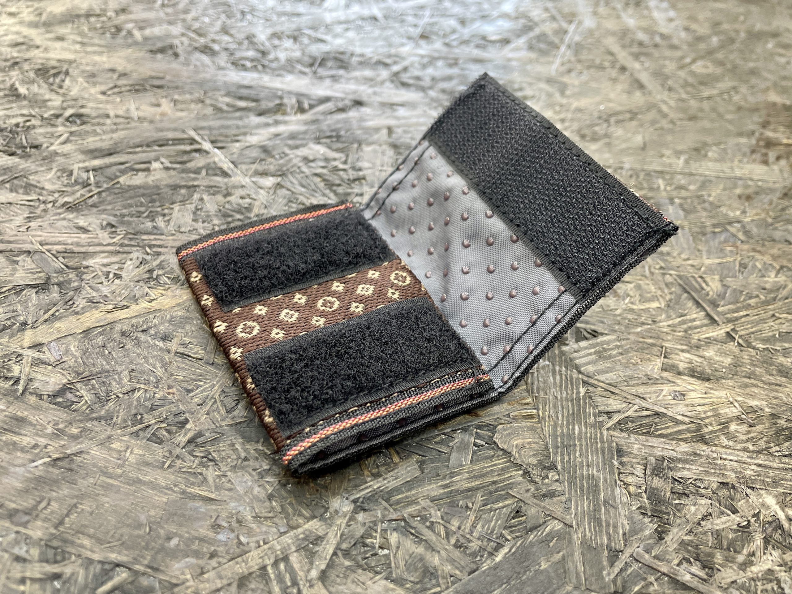 児島産の畳ぶちを使用したオシャレなデザインのベルトバックルカバーです。ベルトのバックルに巻くだけで、バックルが車のボディなどに触れるのを防ぐことができます。 ・1個 1210円(税込)
